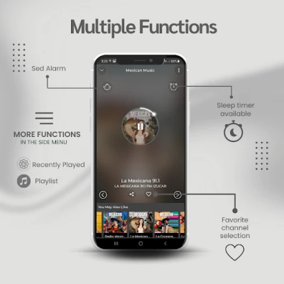 Har ila yau, akwai agogon ƙararrawa da agogon kashewa (timer) domin tsara lokacin sauraron ku, da kuma damar zaɓar tashoshin da kuka fi so don samun su cikin sauƙi a gaba. Zane-zanen wannan manhaja ya yi daidai da jigin kiɗan Mexico, yana ba da kyan gani mai jan hankali. Kada ku manta raba wannan kwarewa ta musamman da iyalanku da abokanku ta hanyoyin sada zumunta, domin su ma su ji daɗin wannan duniyar kiɗa. Domin samun mafi kyawun aiki daga ita, ana bada shawarar amfani da haɗin intanet mai sauri. Duk tashoshin rediyo suna yawo ne ta intanet, saboda haka yana iya ɗaukar ƴan daƙiƙu kafin su fara kunne. Ku shirya don nutsawa cikin cikakken daɗin kiɗan Mexico ba tare da katsewa ba!