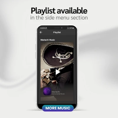 Kada ku damu da barin manhajar a buɗe, domin za ta ci gaba da yawo a bango yayin da kuke amfani da wayarku don wasu ayyuka. Har ila yau, za ku iya sarrafa sauti da ganin taken waƙoƙi ko tashar kai tsaye daga allon kulle na wayarku, yana ba ku cikakken iko a kowane lokaci. Don ƙara muku daɗi, mun haɗa da wani jerin waƙoƙin Mariachi na musamman a cikin menu na gefe, wanda zai ba ku damar nutsuwa cikin wannan salon kiɗa na gargajiya.
