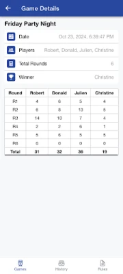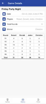 **Mexican Train Score Keeper** yana ba da fasalulluka na musamman don sarrafa maki. Tare da sauƙin shigar maki ga ƴan wasa daban-daban – daga biyu har zuwa takwas – manhajar tana lissafa maki ta atomatik a kowane zagaye. Za ku iya bin diddigin tarihin kowane zagaye, sannan ku ga taƙaitaccen maki na ƙarshe ba tare da wahala ba. Hakanan, daidaita wasanku ba shi da sauƙi: zaɓi tsarin dominoes daban-daban, sarrafa tsawon wasa, kuma ku ajiye jerin sunayen ƴan wasanku da kuka fi so don wasannin gaba. Wannan yana tabbatar da cewa shirye-shiryenku sun yi sauri kuma ba tare da tarnaki ba.