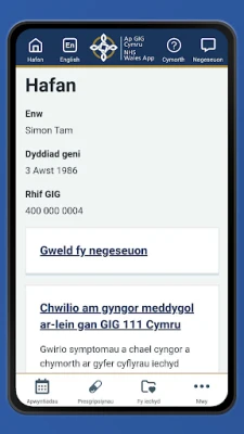 Tare da NHS Wales App, za ka iya yin muhimman abubuwa da yawa don sauƙaƙa maka rayuwa. Misali, za ka iya neman a sake ba ka magungunan da kake amfani da su na kullum kai tsaye. Haka kuma, tana ba ka damar tsara alƙawura da likitanka na iyali (GP) cikin sauƙi ba tare da buƙatar kiran waya ba. Bugu da ƙari, za ka iya duba tarihin kiwon lafiyarka da bayanai masu muhimmanci a kowane lokaci, yana baka damar kasancewa da cikakken ilimi game da yanayin lafiyarka. Kuma don ƙarin sauƙi, ana samun manhajar a harsuna biyu, don dacewa da zaɓinka.