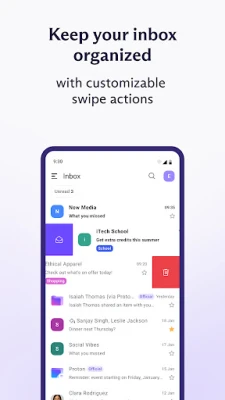 An sake tsara "Proton Mail" don ba ka sauƙin amfani da sabis ɗin imel ɗinka. Zaka iya aikawa da karɓar imel mai tsaro da kuma abubuwan da aka haɗa ba tare da wata wahala ba. Rukunin "Proton Mail" yana ba ka damar sauyawa tsakanin asusu daban-daban, sarrafa saƙonninka ta hanyar manyan fayiloli da alamomi, har ma da amfani da motsa jiki mai sauƙi don tsabtace akwatin saƙonninka. Bugu da ƙari, zaka iya saita sanarwar sabbin imel, aikawa da imel mai kariya da kalmar sirri ga kowa, har ma da jin daɗin akwatin saƙonninka a cikin yanayin duhu (dark mode). Akwatin saƙonninka naka ne gaba ɗaya; ba mu leƙen asirinku don nuna muku tallace-tallace na musamman.